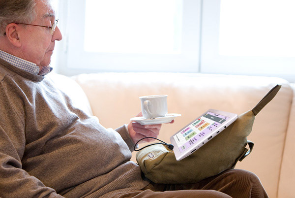 Inclinez le coussin selon votre position de lecture et profitez de votre tablette Facilotab sans avoir à la tenir.